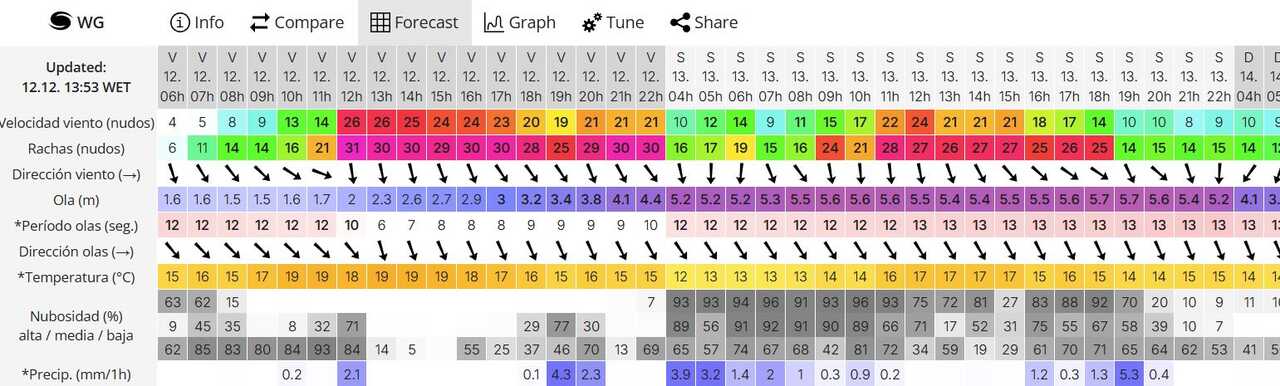 El 67 % de las olas tendrá alturas medias de 3,2 a 4,5 metros