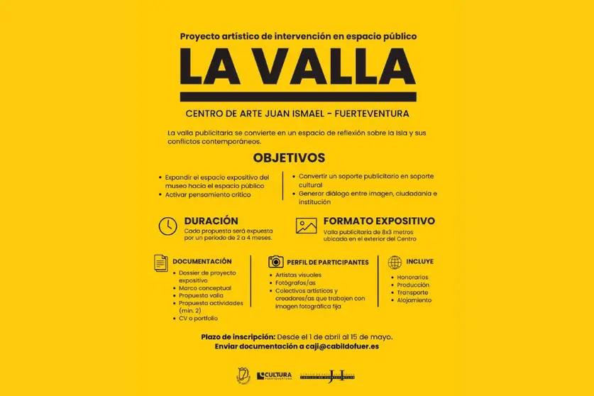 El plazo para la presentación de proyectos permanecerá abierto hasta el 15 de mayo, y las solicitudes deberán remitirse al correo electrónico habilitado por la organización. Toda la información sobre la convocatoria está disponible en la web de Cultura Fuerteventura.