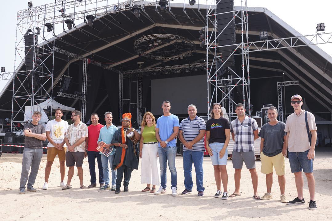 La presidenta del Cabildo de Fuerteventura, Lola García, ha visitado el entorno del festival para comprobar los últimos preparativos de cara a su celebración. La primera regidora insular estuvo acompañada por el consejero de Cultura, Rayco León; el alcalde de La Oliva, Isaí Blanco, los concejales de Cultura y de Limpieza del Ayuntamiento, David Hernández Martín y Rubén González, respectivamente; así como los artistas Ara Queen of Drums, Saylén, Alejandro Frey de Abora Reggae, 5 Nclave, The Plunger Dixie Band y El Rincón de Tetir.