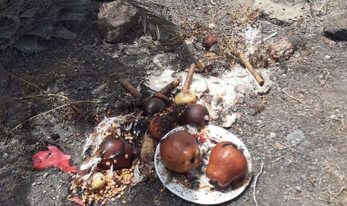 El colectivo Imastanen ha denunciado la aparición de restos de un ritual de santería en un yacimiento arqueológico de los mahos, en el municipio de La Oliva.