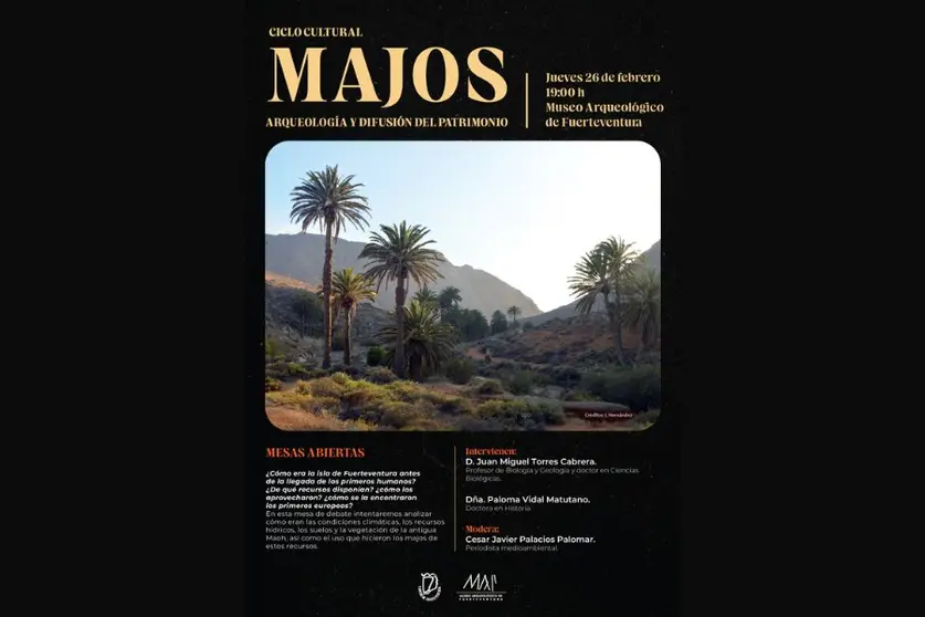 El Museo Arqueológico de Fuerteventura (MAF) acogerá el próximo jueves, 26 de febrero, a las 19.00 horas, la segunda sesión del Ciclo Cultural Majos, una iniciativa que durante todo 2026 profundizará en el conocimiento del patrimonio arqueológico e histórico de la isla.