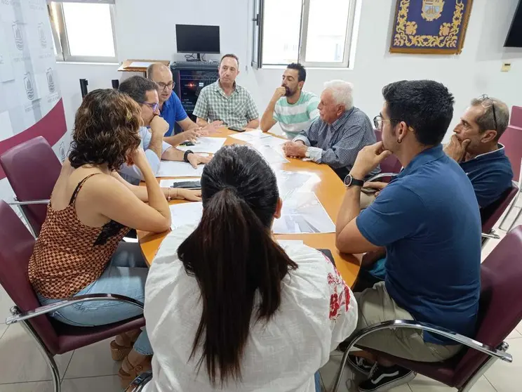 El alcalde de Puerto del Rosario, David de Vera, y las concejalas de Contratación y Comercio, María Franco y Tacoremi Gutiérrez, respectivamente, mantuvieron una reunión este jueves con los productores que desarrollan su actividad económica en las instalaciones del mercado municipal, con motivo de las obras de rehabilitación del edificio que se llevarán a cabo en los próximos meses.