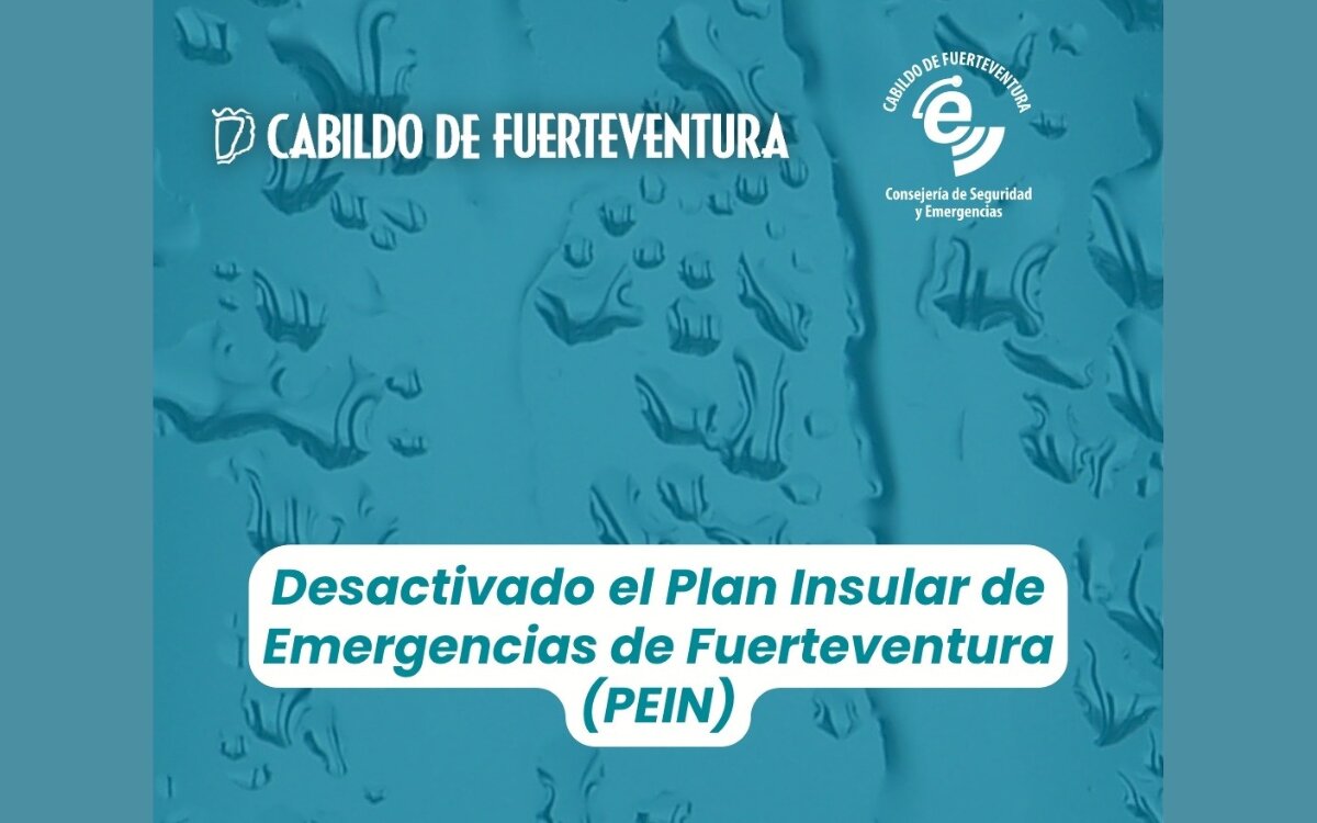 El Cabildo de Fuerteventura ha desactivado el Plan Territorial Insular de Emergencias de Protección Civil (PEIN) desde las 00.00 horas de este sábado, 21 de marzo, tras la actualización de las alertas meteorológicas por parte de la Dirección General de Emergencias del Gobierno de Canarias, que han pasado a fase de prealerta.
