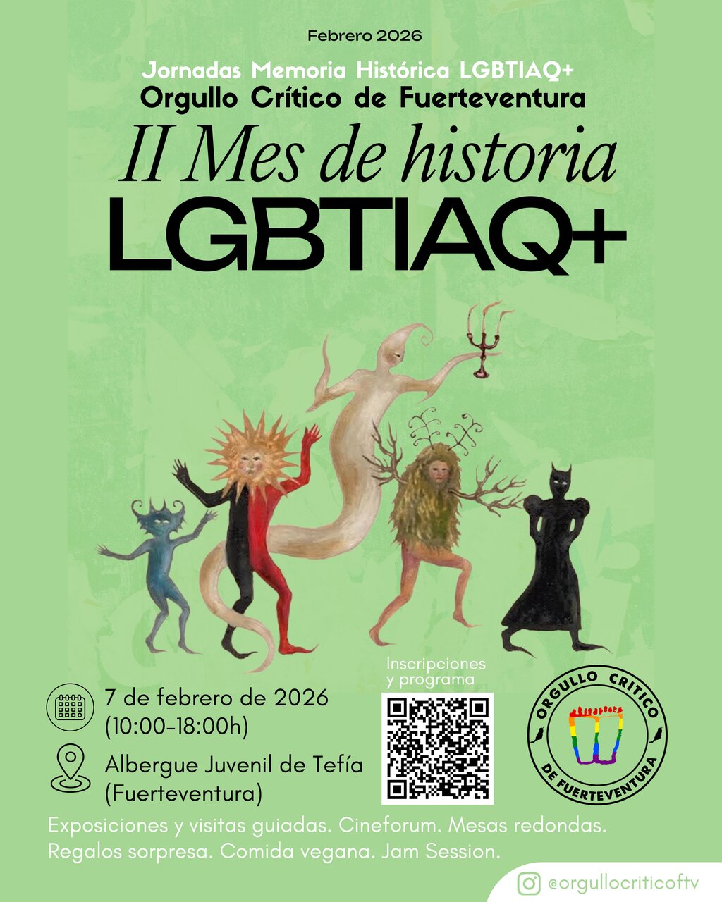 La isla de Fuerteventura acogerá el próximo sábado 7 de febrero de 2026, de 10:00 a 18:00 horas, las Jornadas autogestionadas de Memoria Histórica LGBTIAQ+, organizadas por el colectivo Orgullo Crítico de Fuerteventura. La cita se enmarca en la celebración del II Mes de Historia LGBTIAQ+ y tendrá lugar en el Albergue Juvenil de Tefía.