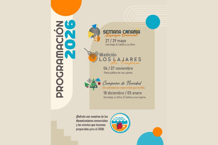 El Ayuntamiento de La Oliva, a través de la Concejalía de Comercio, ha dado a conocer la Programación Comercial 2026, un calendario de acciones diseñado para impulsar la actividad económica, apoyar al pequeño comercio y fomentar el consumo en los distintos núcleos del municipio a lo largo de todo el año.