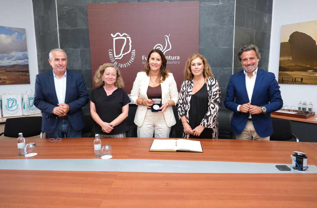 Posteriormente, la presidenta del Parlamento de Canarias, Astrid Pérez, se reunió con la presidenta del Cabildo de Fuerteventura, Lola García, con quien abordó cuestiones de interés institucional y firmó en el Libro de Honor de la corporación insular.
