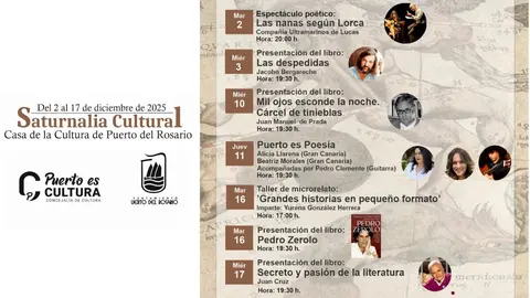 Cultura Saturnalia Cultural cierra su primera edición en Puerto del Rosario con una intensa programación literaria y artística Redacción 18/12/25